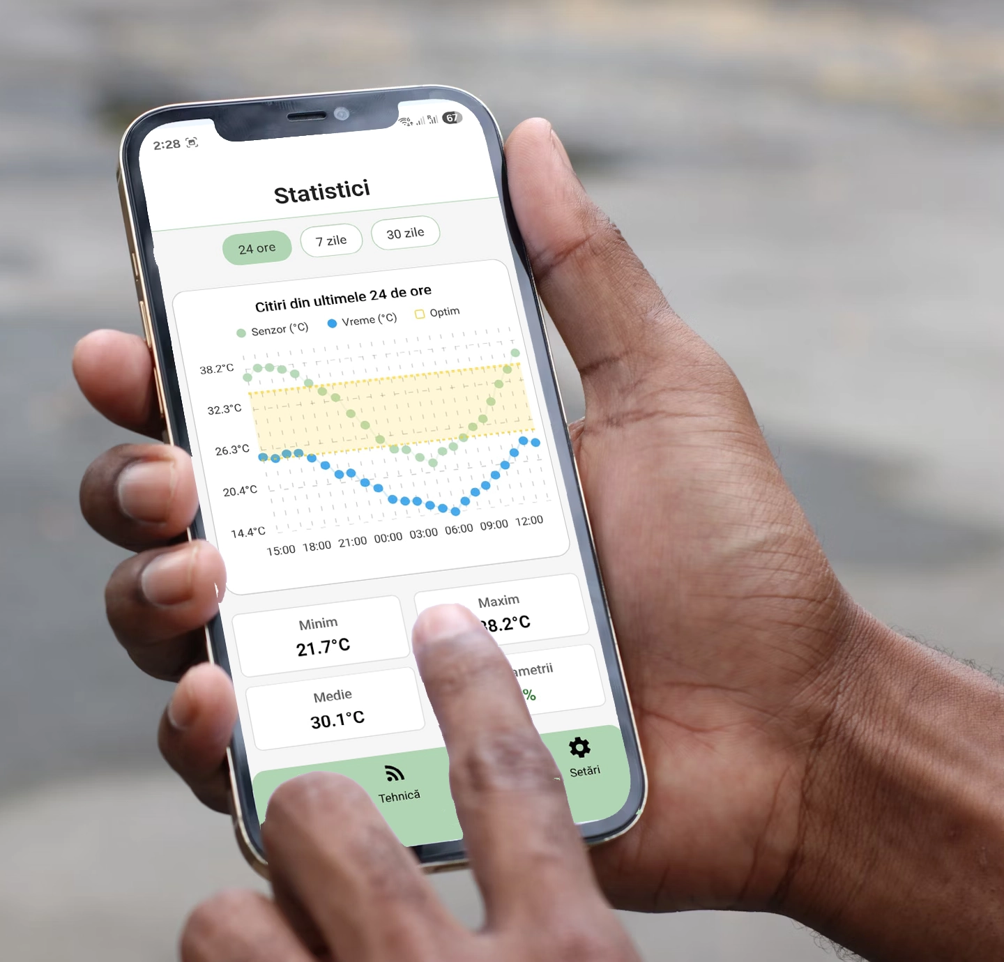 Controleaza sera ta de oriunde direct de pe telefon. Aplicatia inteligenta care te ajuta sa monitorizezi si sa optimizezi conditiile din sera in timp real.